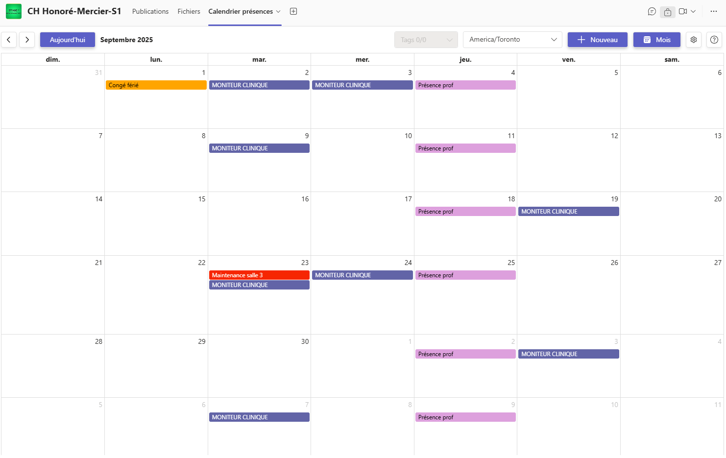 Le calendrier mensuel